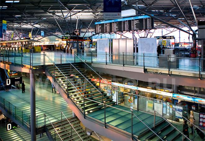 Второй терминал не так велик снаружи, как многоэтажен внутри. Магазины, бюро путешествий, кассы авиакомпаний. Все это оформлено в стекло и стальные конструкции.