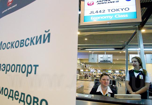 Сотрудники аэропорта готовятся открыть регистрацию на рейс в Токио.